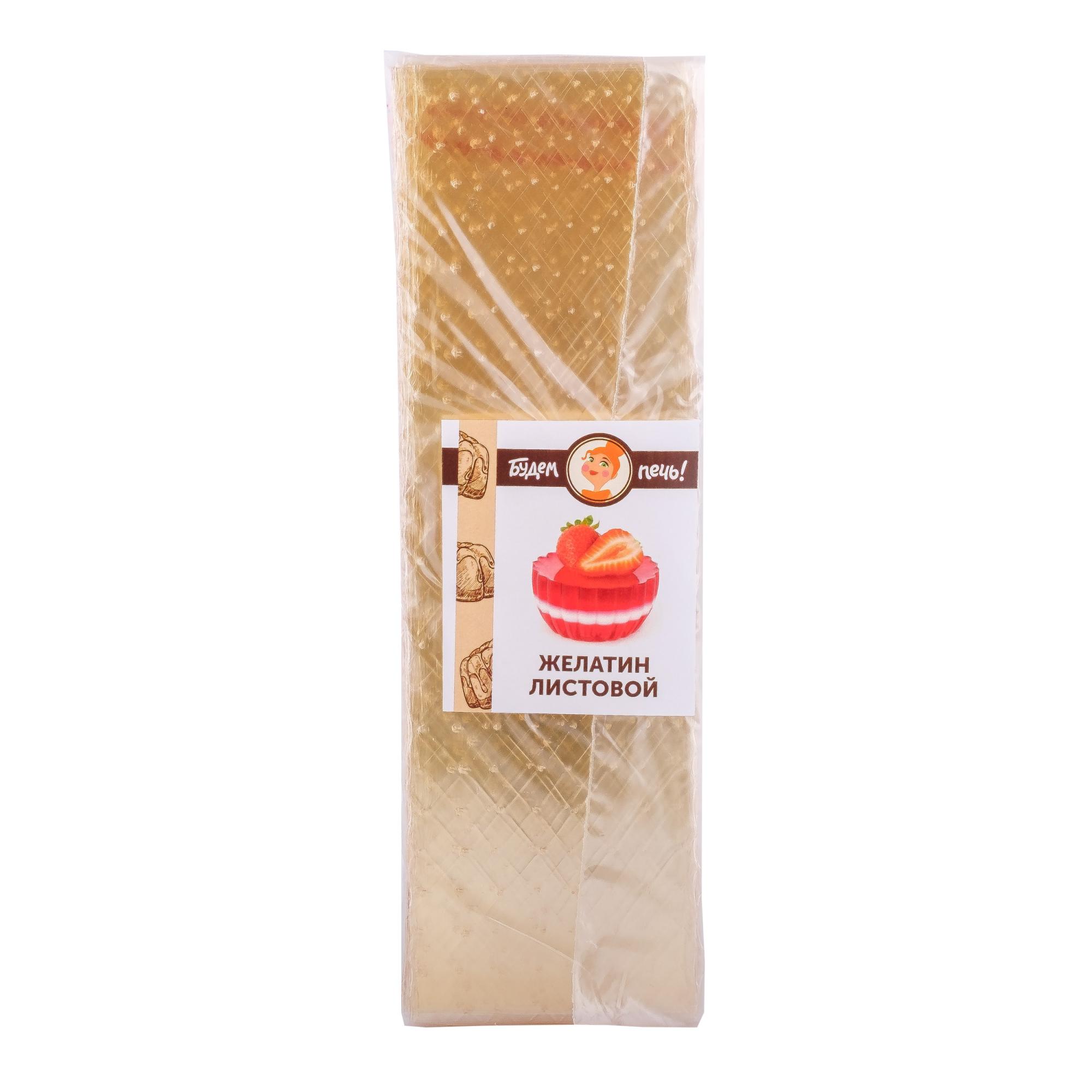 Листовой желатин – прозрачные пластинки желтоватого цвета, без запаха. Сейчас стало очень популярно, собственноручно, в домашних условиях готовить такие лакомства, как муссовые торты и глазури для их покрытия, суфле, конфеты, желейные десерты, машмеллоу и многое другое. Желатин достаточно плотно сгущает массу изделия, придавая ему упругость и стабильность.Желирующая сила - 120 Блюм.